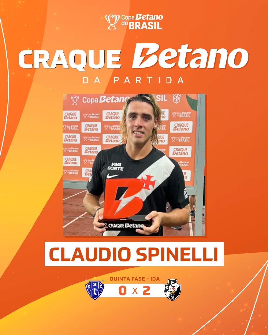O autor dos dois gols da partida. Com finalizações distintas. Dono do jogo. O #CraqueBetano é Spinelli do @vascodagama!