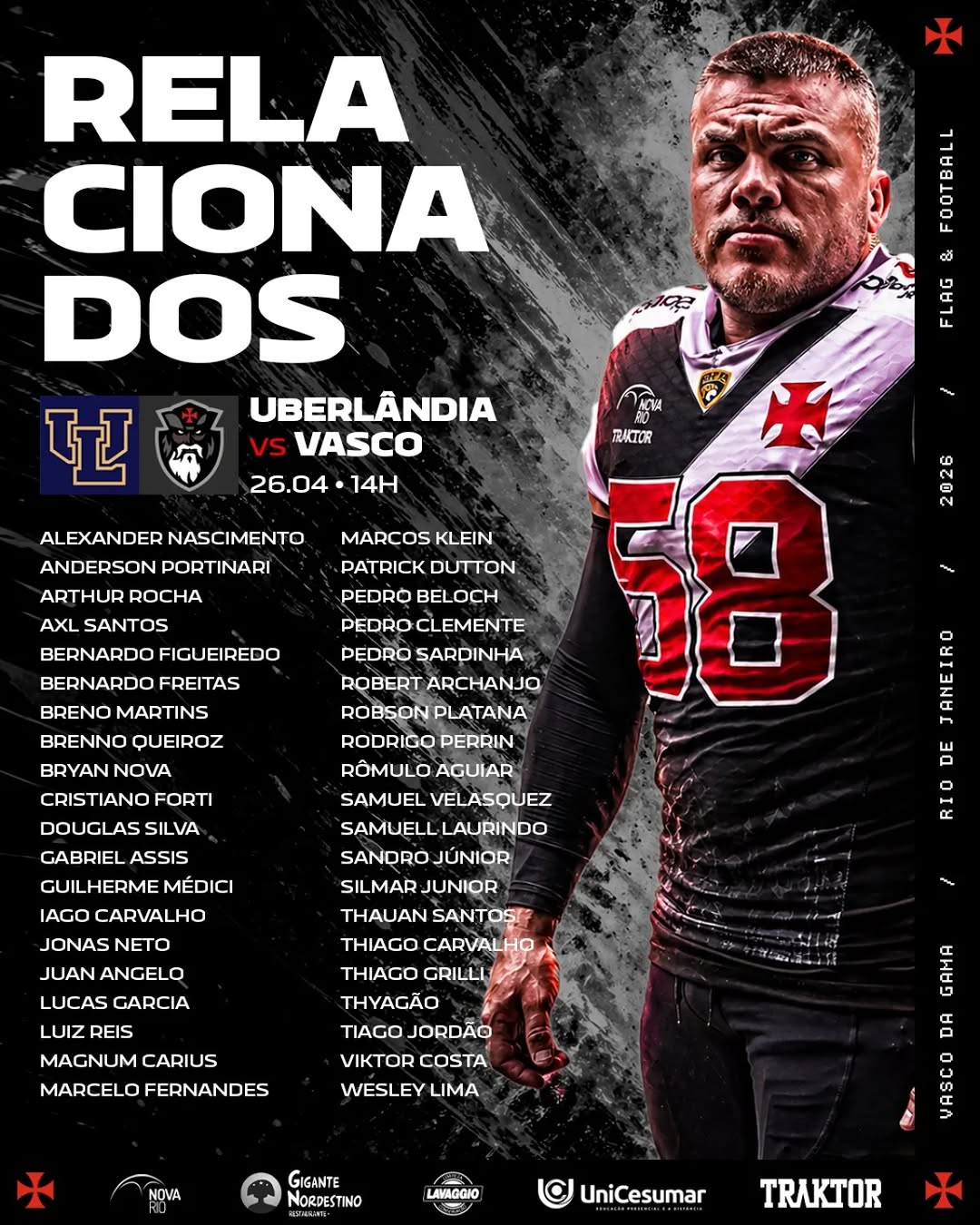Futebol Americano: Vasco enfrenta o Uberlândia pelo Campeonato Mineiro neste domingo às 14h com Bandsports no Youtube