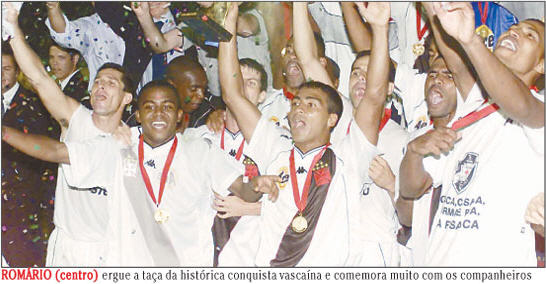 ![]() FICHA TÉCNICA Estádio: Palestra Itália Data: 20/12/2000 Hora: 21h45 Renda/Público: Não divulgada/ 29.993 Arbitragem: Márcio Rezende de Freitas (Fifa MG) Cartões Amarelos: Flávio, Juninho e Fernando (Palmeiras); Nasa, Odvan, Júnior Baiano, Jorginho Paulista e Hélton (Vasco) Cartão vermelho: Júnior Baiano Gols: Arce aos 36, Magrão aos 37 e Tuta aos 45 minutos do primeiro tempo; Romário aos 14, Romário aos 23, Juninho Paulista aos 41 e Romário aos 48 minutos do segundo tempo PALMEIRAS Sérgio, Arce, Galeano, Gilmar e Thiago Silva, Fernando, Magrão, Flávio e Rodrigo Taddei; Juninho e Tuta (Basílio). Técnico: Marco Aurélio VASCO Hélton, Clébson, Odvan, Júnior Baiano e Jorginho Paulista; Nasa (Viola), Jorginho (Paulo Miranda), Juninho Pernambucano e Juninho Paulista; Euller (Mauro Galvão) e Romário. Técnico: Joel Santana Clique aqui para conferir o emocionante relato do gol do título na voz de Luiz Penido, da Rádio Tupi (Formato: Real Player). Veja o vídeo do último gol e da comemoração final narrado por Luiz Penido: Confira, abaixo, a transcrição da narração: "Preparação então vai ser executado o lance em favor da representação do Palmeiras. Antes um atendimento sendo completado o jogador... o... Magrão, que levou uma bolada. [Inaudível] Bateu, voltou, o árbitro disse que não tava valendo. Recoloca então a bola, vai bater finalmente o Jorginho Paulista. Ele prepara, vai bater, bateu bola entregando para o Viola na ponta canhota, bota no terreno. Vamos escolher o craque do jogo em nome do [Publicidade]. Vem Viola, traz o ataque do Vasco da Gama, driblou o primeiro, rolou a bola, Juninho Paulista colocou, bateu na defesa, emendou Romário, guardou É CAMPEÃO! É CAMPEÃO! É CAMPEÃO! É CAMPEÃO! GOOOOOOOOOOOOOOOOOOOOOOOOL! É DO VASCO DO VASCO DO VASCO, É DO MILAGRE, É DA VITÓRIA, É NA RAÇA! É NA RAÇA! É O REI ROMÁRIO! É O QUARTO GOL! É DE VIRADA! É INACREDITÁVEL! EU QUERO OUVIR O HINO DO VASCO CAMPEÃO! [Entra o hino do Vasco]. Nós vamos cantar muito alto! Vamos cantar muito forte! Vamos cantar muito! É bi quatro a três tava três a zero! A vida muda de minuto a minuto! É a vitória! É a consagração! É o Vasco campeão! Arrebenta Vascão da Gama! [Hino do Vasco] Eu vou cantar este hino a noite inteira, Romário aos quarenta e oito! Rala Palmeiras! Barato bom é do Vascão o couro come e o placar diz: Vasco quatro, Palmeiras três! [Hino do Vasco] Eu estou de alma lavada, lavada, lavada. [Vinheta] Chora, torcida adversária! Chora, torcida adversária! Chora, que eu quero ver! É de virada! Três a zero virou quatro a três! É inacreditável! O Vasco cala São Paulo! O Vasco cala o Palestra, É CAMPEÃO! ACABOU O JOGO! O VASCO É CAMPEÃO! É CAMPEÃO! É CAMPEÃO! É CAMPEÃO! EXPLODE A GALERA! É CAMPEÃO DO ANO DOIS MIL! VASCO! VASCO! VASCO! É CAMPEÃO! É CAMPEÃO!" Reportagem do Globo Esporte no dia seguinte Reportagem do Esporte Espetacular em abril de 2007 Fonte: GloboEsporte.com (texto), Lance (foto), Jornal dos Sports (texto e foto), Rádio Tupi/digitalizado por NETVASCO (áudio), TV Globo/Youtube (vídeo) |