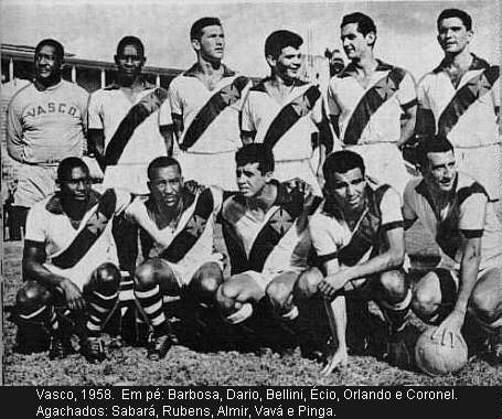 - Barbosa (Hélio), Dario (Paulinho), Bellini (Viana), Orlando e Coronel; Écio e Rubens (Roberto Pinto); Sabará, Almir, Vavá (Wilson Moreira) e Pinga (Quincas).