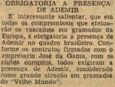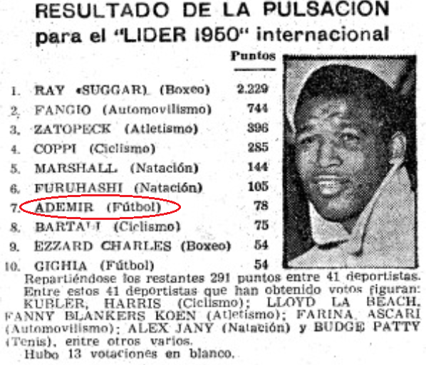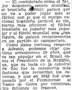 O mesmo Mundo Deportivo em 27/12/1951 se referiu a Ademir como o melhor centroavante do mundo e disse que ele era tão famoso no Brasil quanto Presidente da República.