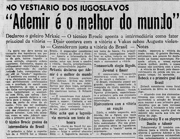 Voltando à Seleção Brasileira... Ademir brilhou no jogo contra a Iugoslávia na Copa do Mundo de 1950. Os iugoslavos ficaram impressionados...