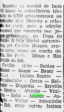 Mas a comissão técnica do Brasil cortou Ademir por suas condição física.