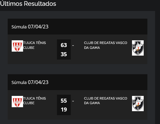 Fonte: NETVASCO (texto), FBERJ (resultados)