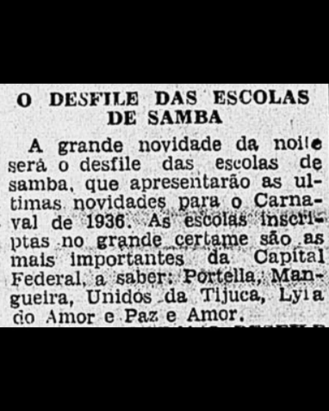 O 1º desfile ocorreu em 07/12/1935. As festividades foram em homenagem a Caboclo e Provenzano, históricos atletas do remo vascaíno. Um combinado do Vasco enfrentou um combinado da Saúde, tradicional bairro da região portuária do Rio. Após a partida, as escolas de samba desfilaram. Portela, Mangueira, Unidos da Tijuca, Lira do Amor e Paz do Amor apresentaram as novidades que estavam preparando para o Carnaval de 1936. As agremiações carnavalescas desfilaram pela pista de atletismo do estádio vascaíno, após a vitória do combinado do Vasco por 2 a 1.