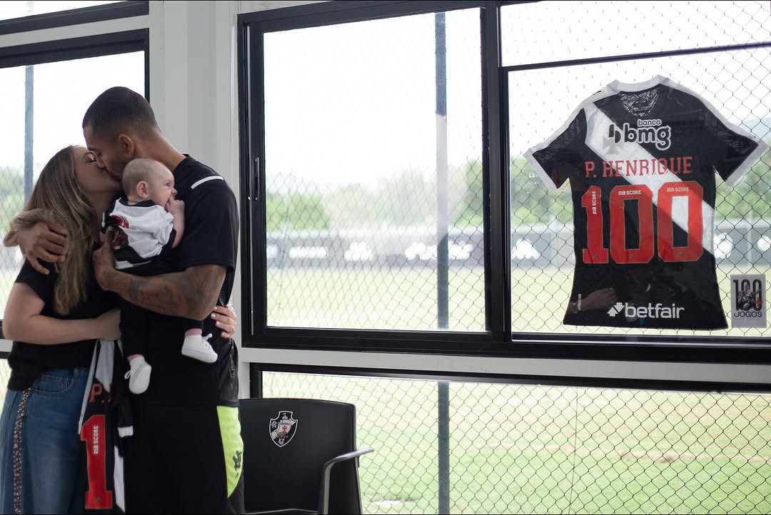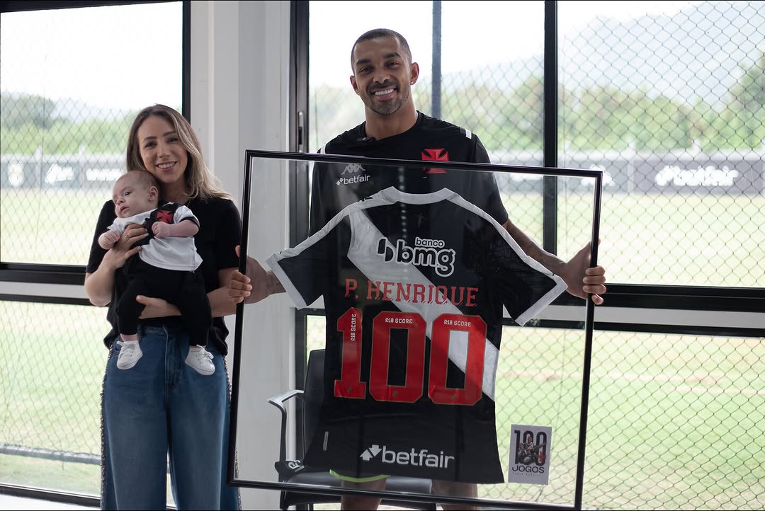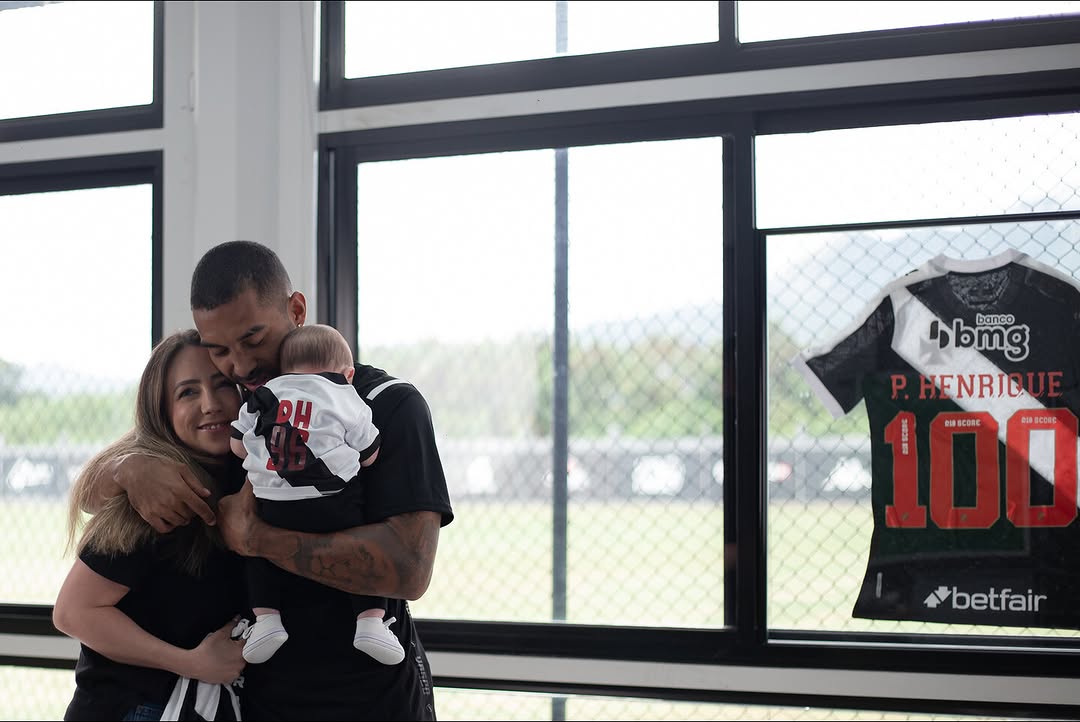 Veja fotos de Paulo Henrique com sua família recebendo camisa com número 100 do Vasco