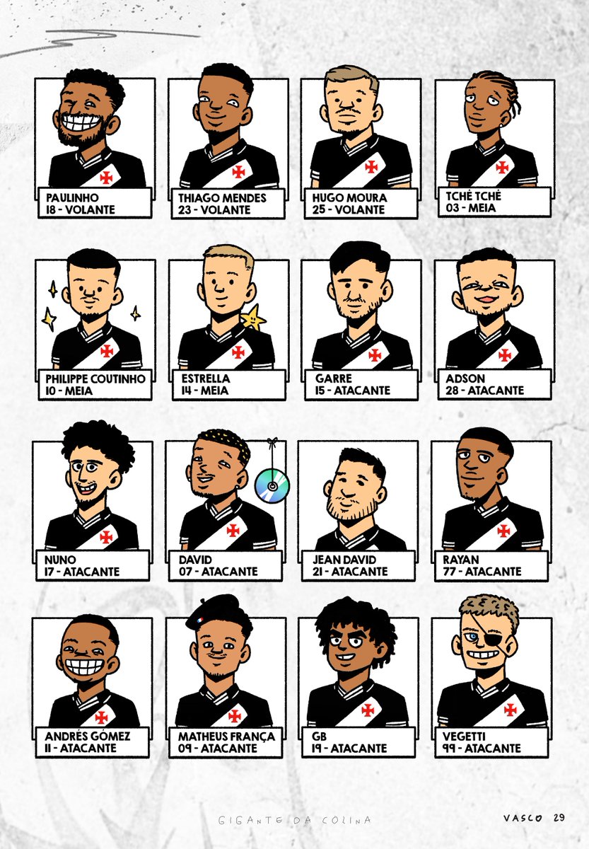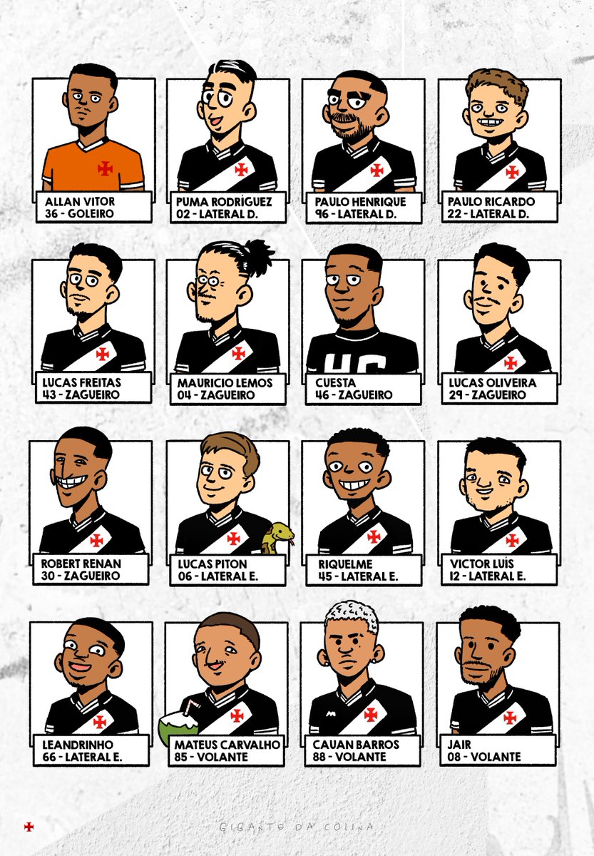 Veja as caricaturas dos jogadores do elenco do Vasco