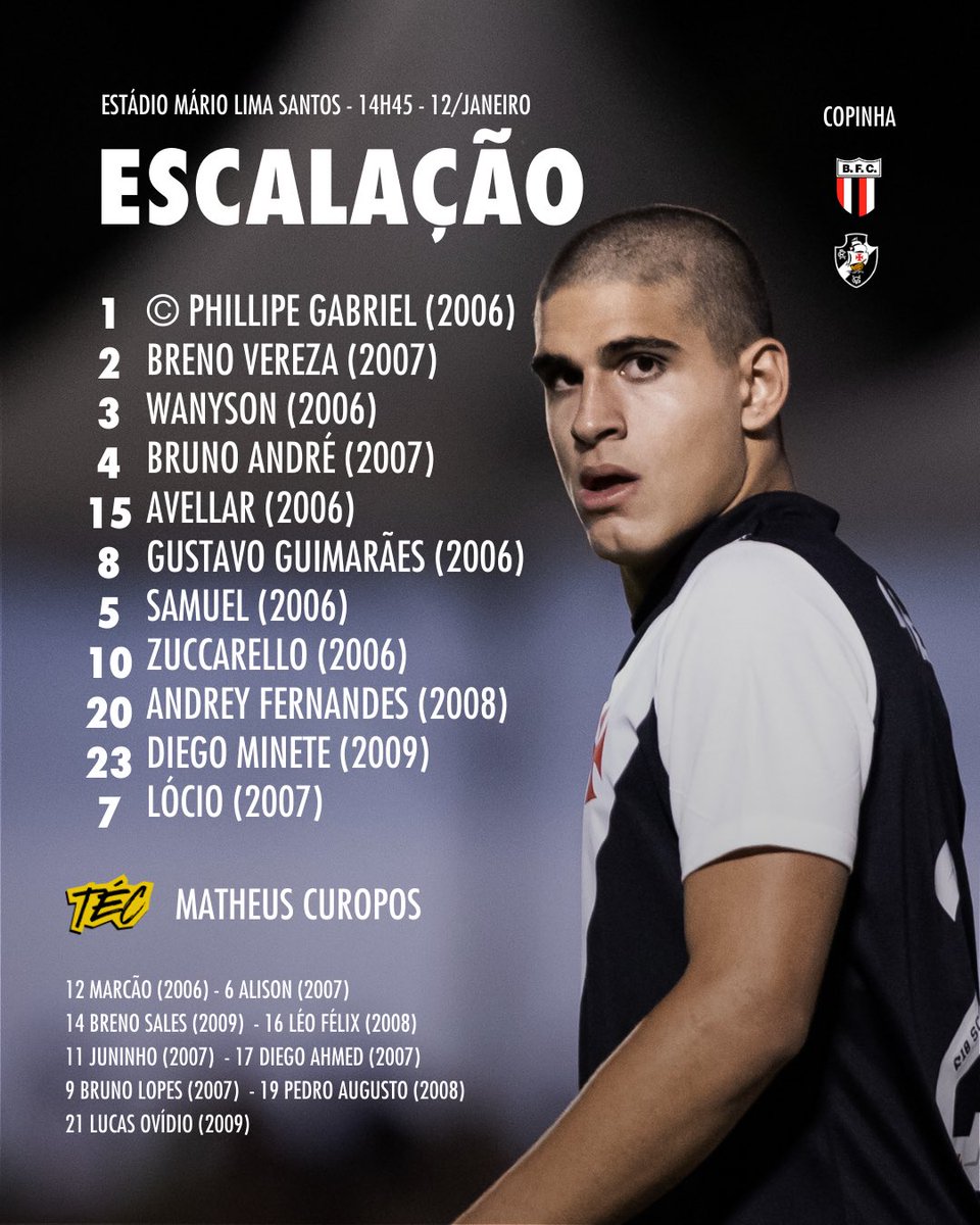 Sub-20: Confira a escalação do Vasco para o jogo contra o Botafogo-SP; Bruno Lopes é opção no banco