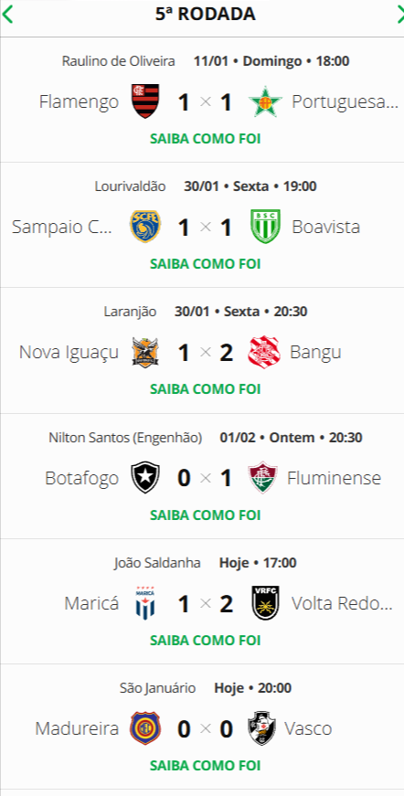 Fonte: NETVASCO (texto), ge (classificação, resultados)