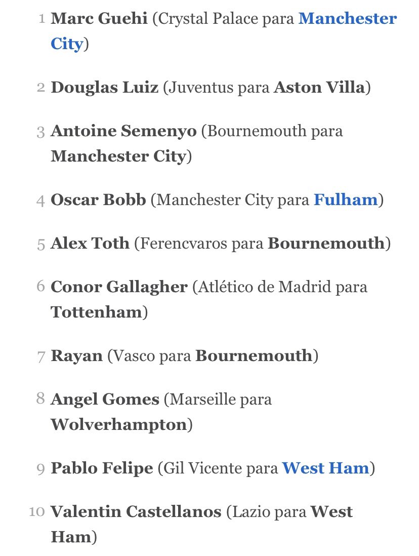 O site ‘The Athletic', parte esportiva do ‘The New York Times', listou as 32 melhores contratações, da pior para a melhor, se baseando em custo-benefício, potencial na equipe e necessidade do clube.