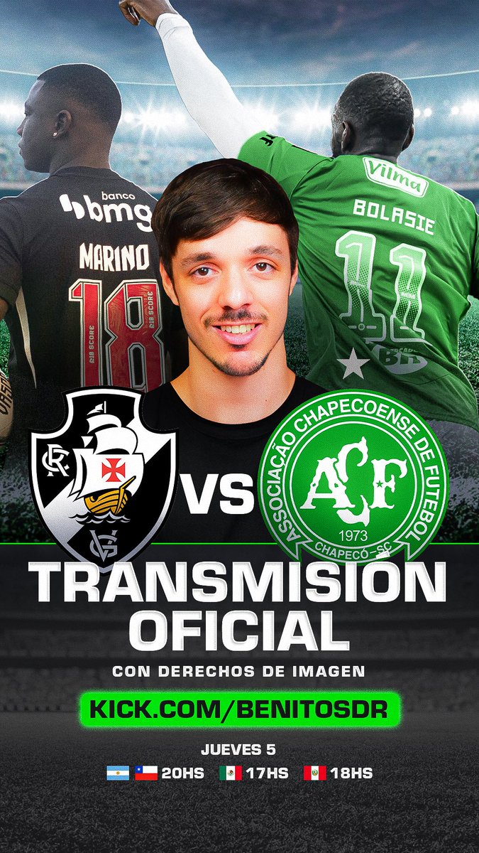 Hoy desde las 19:30 estaremos transmitiendo con imagen el partido entre Vasco y Chapecoense en mi canal de Kick.
