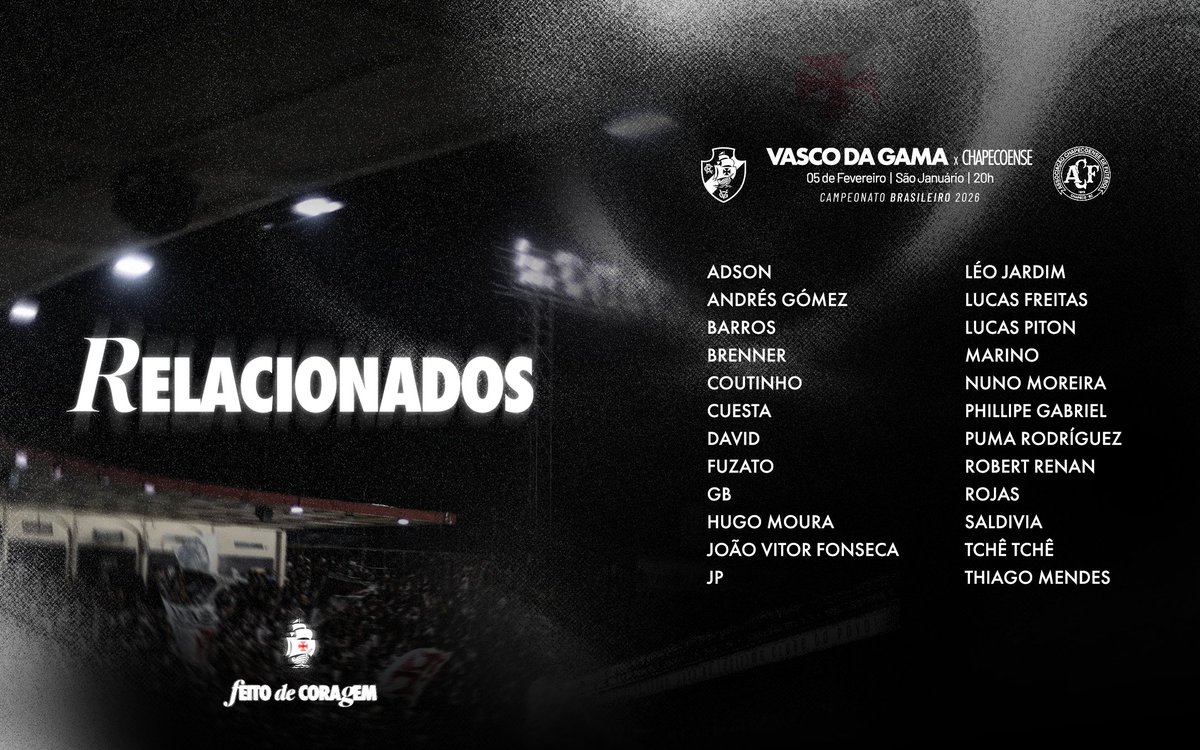 📝 Lista de relacionados para o primeiro jogo do 𝐆𝐢𝐠𝐚𝐧𝐭𝐞 𝐝𝐚 𝐂𝐨𝐥𝐢𝐧𝐚 em casa pelo Brasileirão 2026!