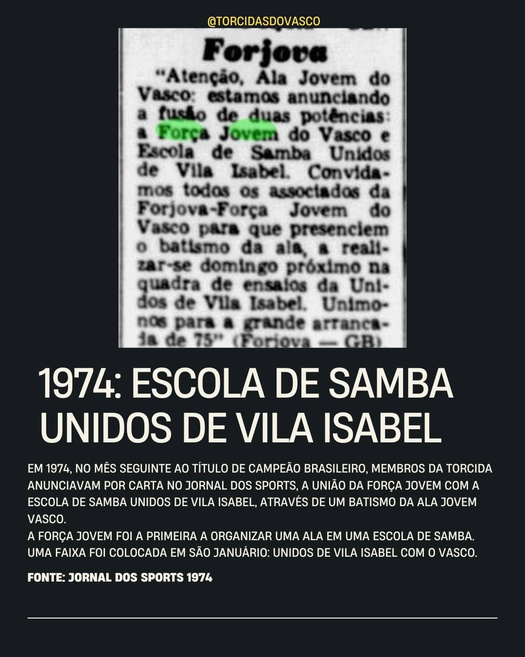 Fonte: Instagram Torcidas do Vasco