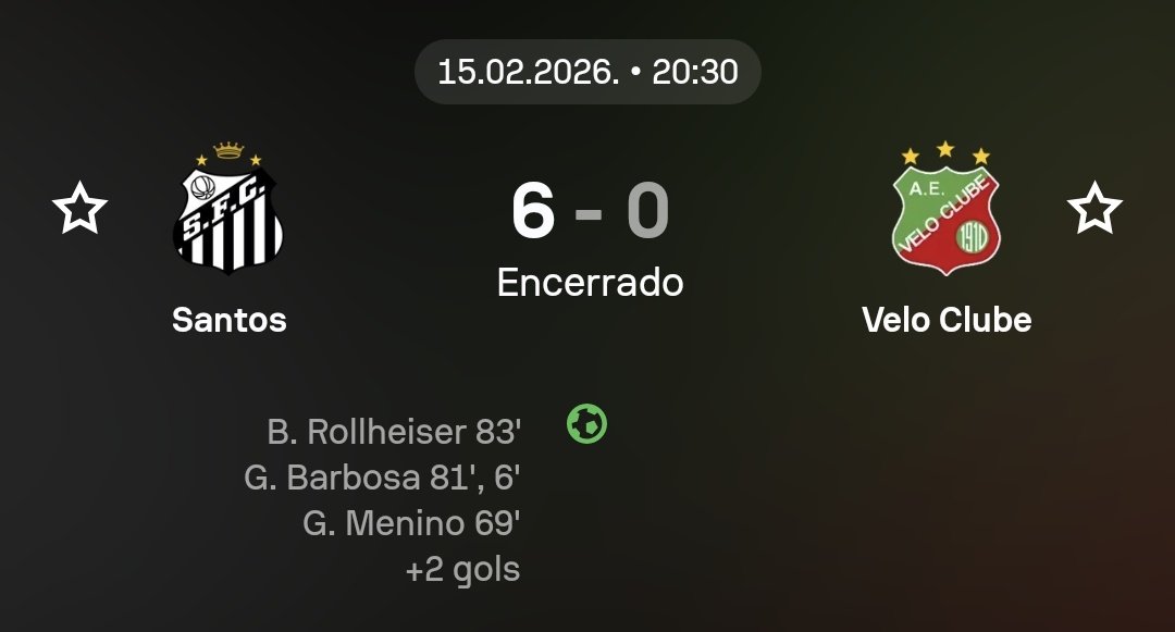 Próximo adversário do Vasco no Brasileiro, Santos goleia o Velo Clube por 6 a 0 pelo Paulista