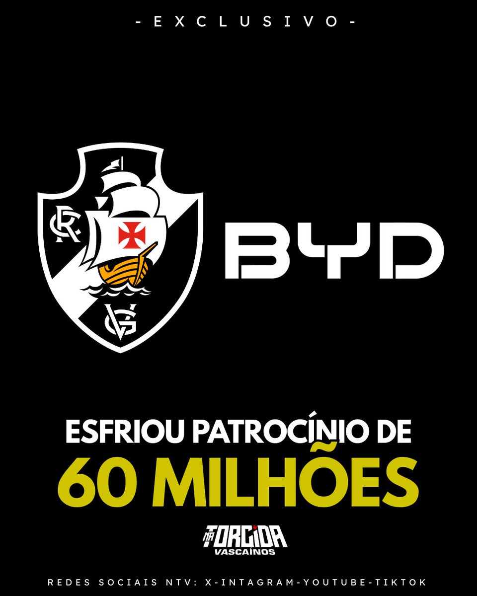 O Vasco esteve muito próximo de fechar seu patrocínio master com a grande montadora automotiva chinesa BYD. Os valores giravam em torno de 60 milhões de reais, além de bônus que poderiam chegar a 80 milhões de reais.