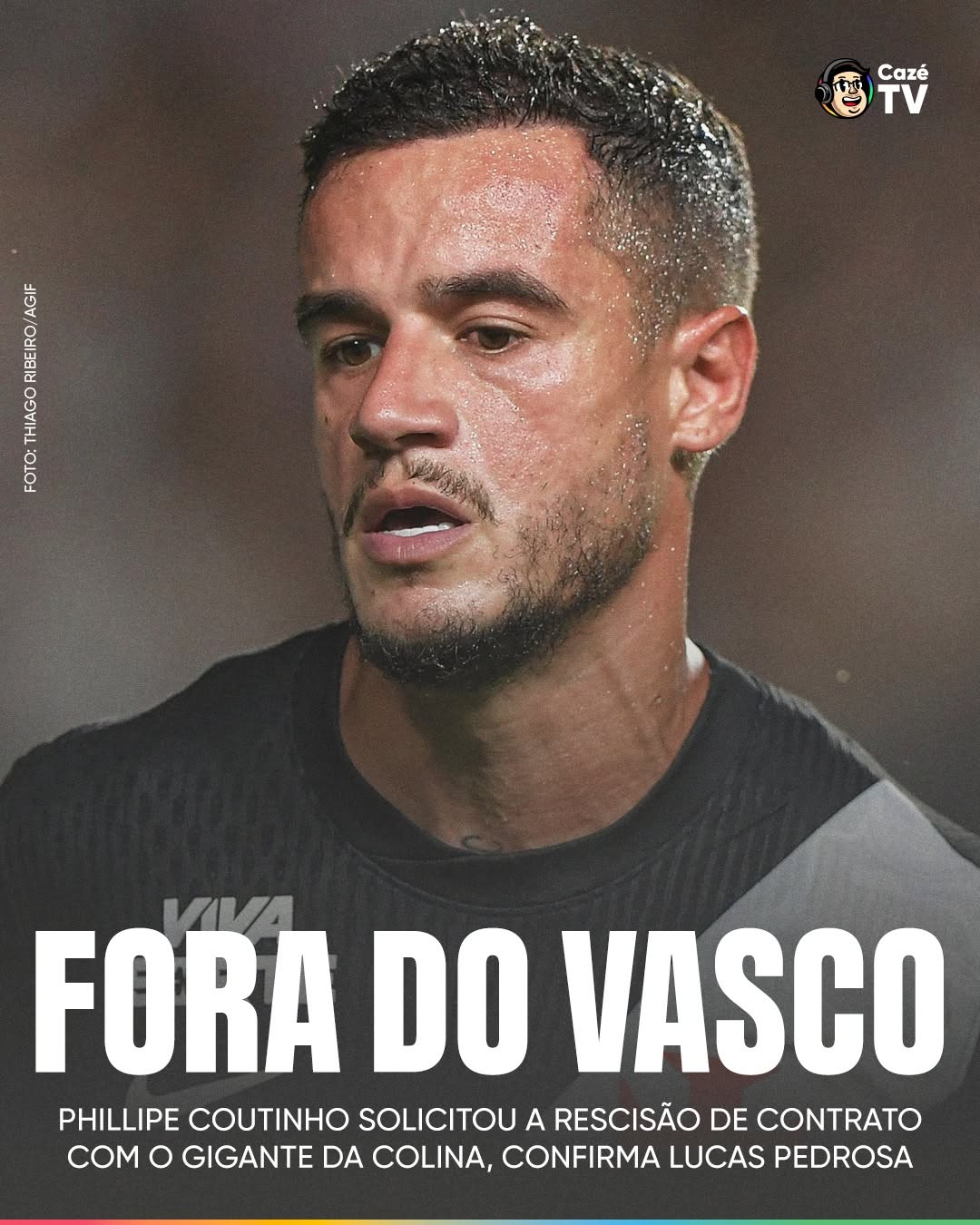 SURPRESA NEGATIVA... Nosso @lucaspedrosa94 confirmou que Philippe Coutinho solicitou ao Vasco uma rescisão de contrato com o clube! A decisão pegou a diretoria do Gigante da Colina de supetão, que não concorda com a escolha do atleta. A saída dele deve ser confirmada ainda hoje! 😳🚨