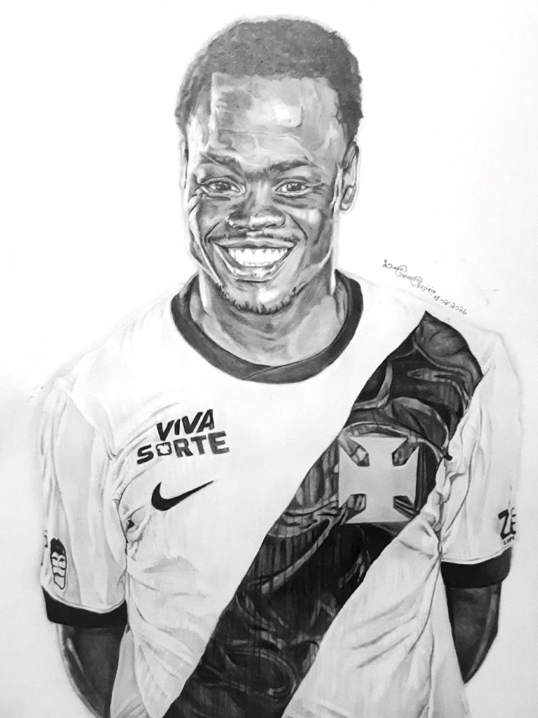 Artista vascaíno Luan Gomes faz desenho de Andrés Gómez