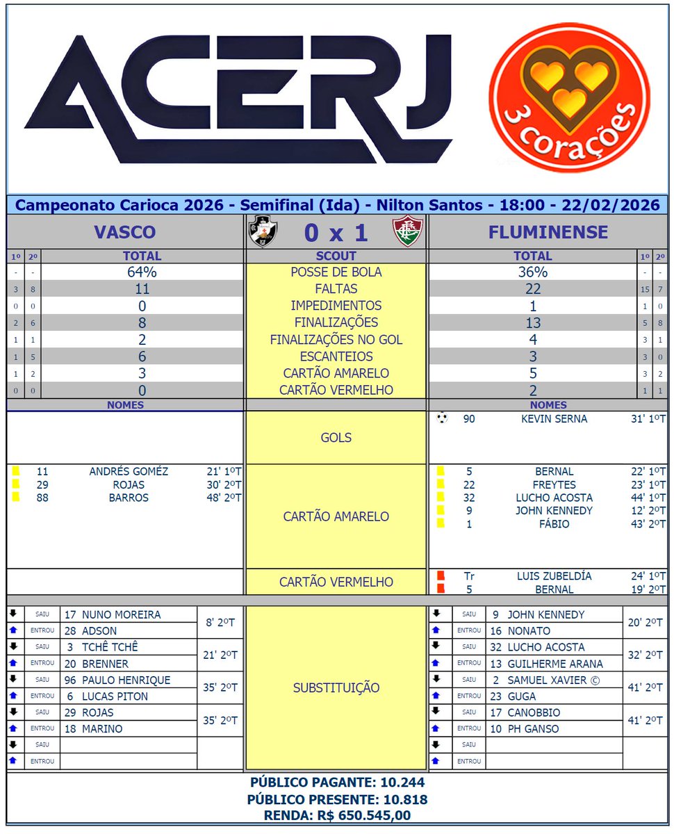 O primeiro tempo foi marcado pela intensidade no Niltão. O Vasco tentou impor seu jogo de controle de bola, enquanto o Fluminense apostou nas transições rápidas, buscando pegar a defesa cruz-maltina desorganizada.