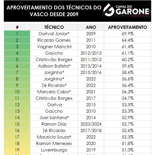 Confira as campanhas dos técnicos do Vasco desde 2009; Diniz tem o 9º pior aproveitamento entre os 39 treinadores