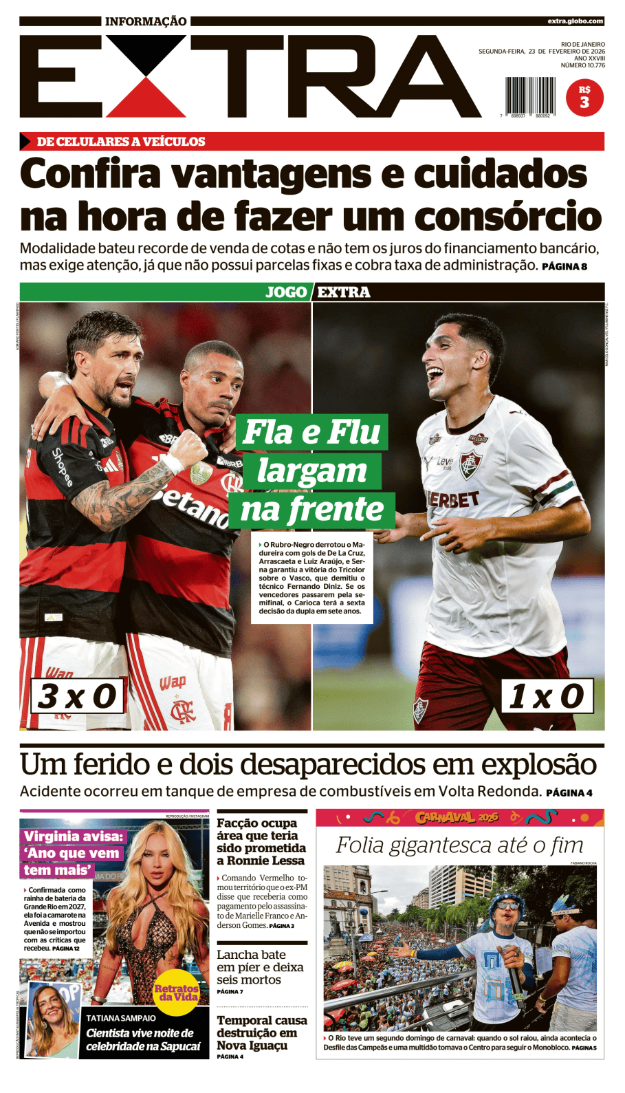 No 1º jogo da semifinal do Campeonato Carioca, o Vasco foi derrotado pelo Fluminense por 1 a 0 no Engenhão. Após a partida, Fernando Diniz deixou de ser o técnico do Vasco. Veja as capas dos jornais.