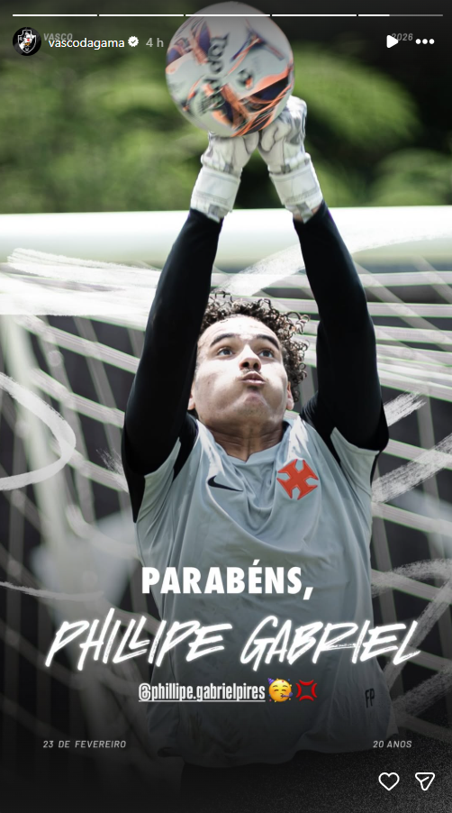 Vasco parabeniza Phillipe Gabriel, aniversariante desta 2ª-feira
