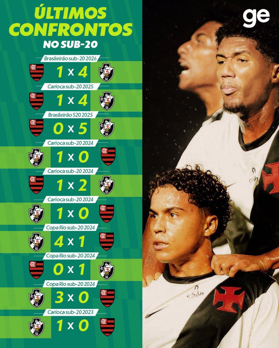 💢 Vasco venceu os últimos 10 confrontos contra o Flamengo na categoria Sub-20.