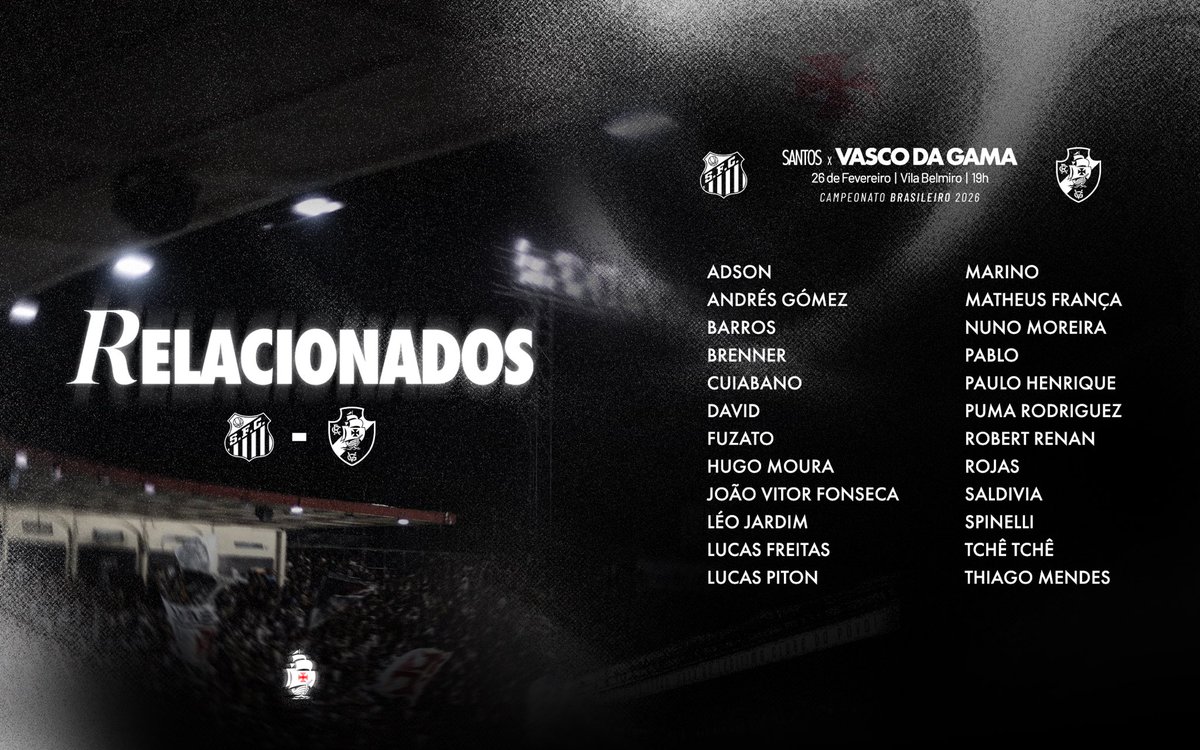 📋 Relacionados do Vasco da Gama para a viagem rumo a Santos ✈️💢
