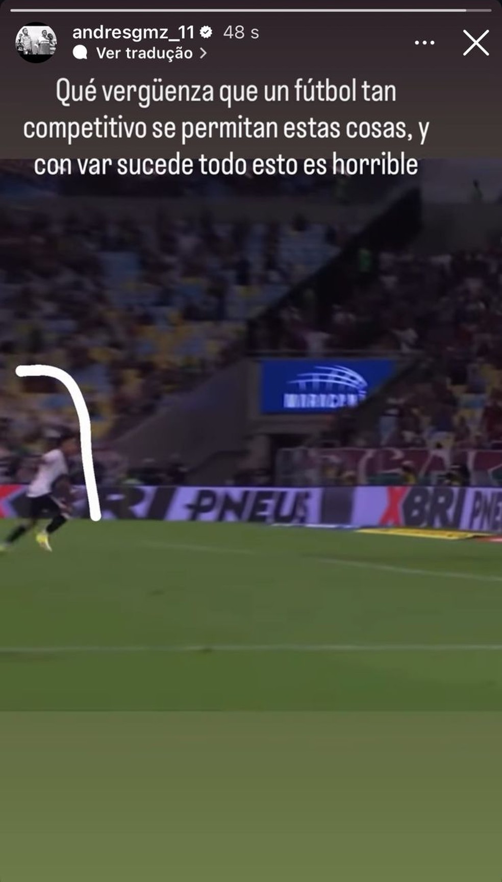 — Que vergonha que, em um futebol tão competitivo, se permita essas coisas. E, com VAR, acontecer tudo isso é horrível — escreveu o jogador em postagem apagada minutos depois.