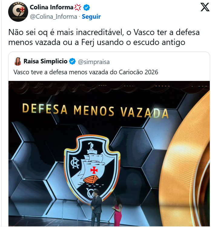 Ferj usa versão antiga do escudo do Vasco na premiação dos melhores do Campeonato Carioca