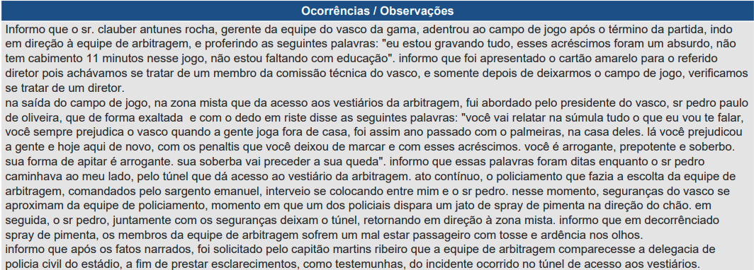 Árbitro relata na súmula cobranças de Pedrinho após Cruzeiro 3 x 3 Vasco