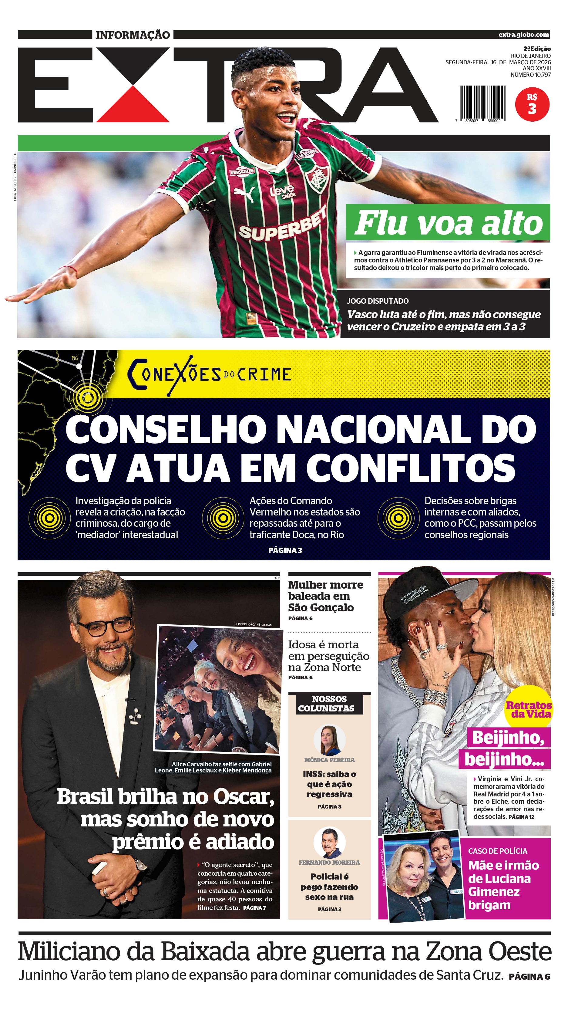 Pelo Campeonato Brasileiro, o Vasco empatou com o Cruzeiro por 3 a 3 no Mineirão, gols de Barros (2) e Brenner. Veja as capas dos jornais.