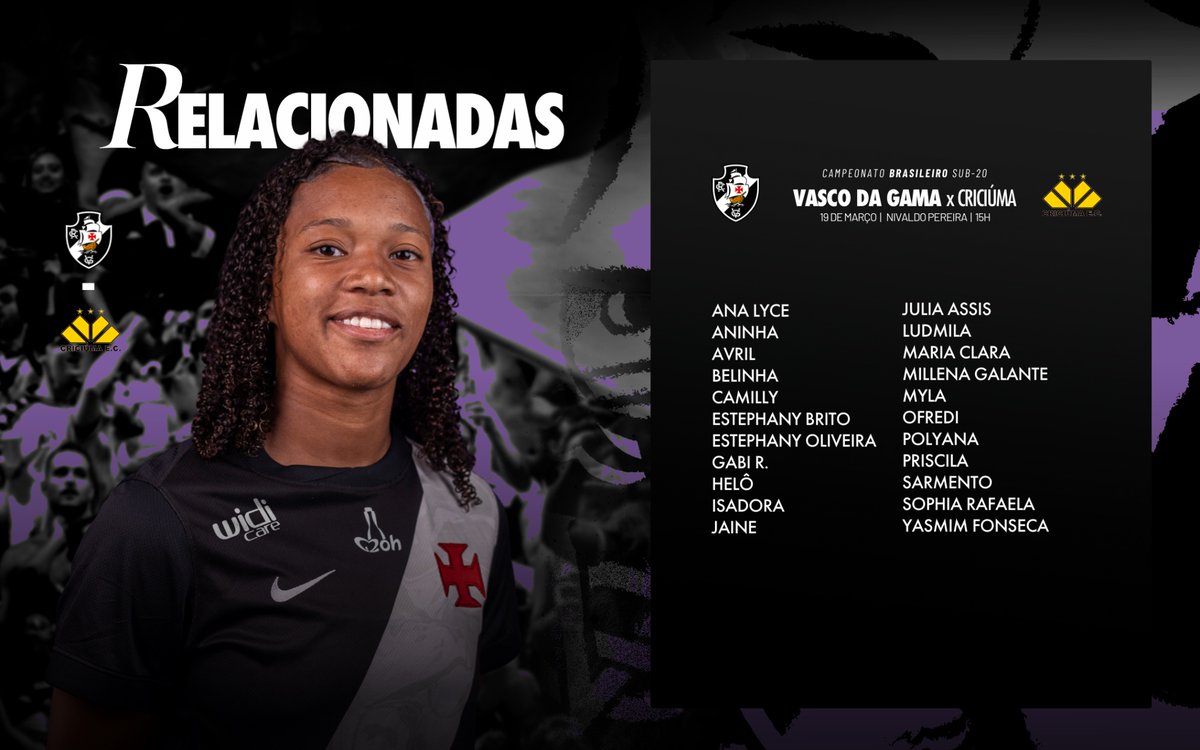 📋 Crias relacionadas para o duelo diante do Criciúma, às 15h! 💢