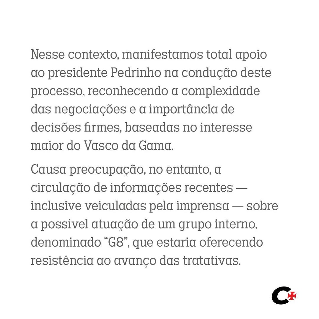 Confraria Vascaína divulga nota em apoio a Pedrinho na questão da venda da SAF