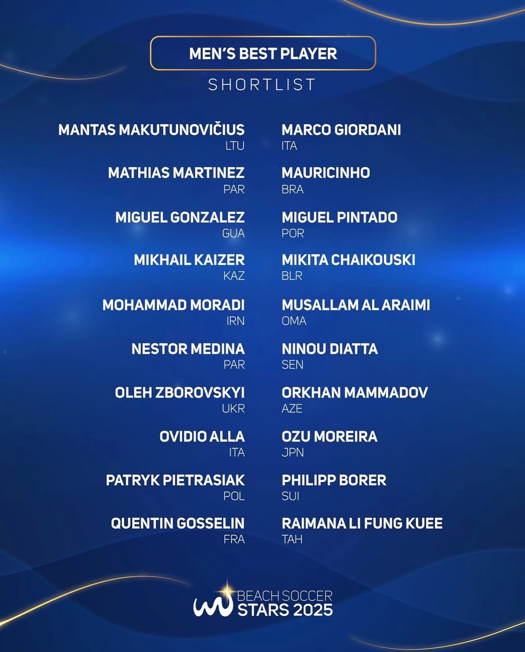 Beach Soccer: Mauricinho está na lista dos 100 melhores jogadores do mundo em 2025