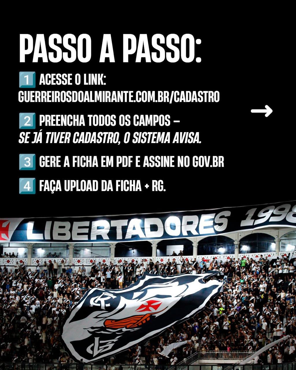 Estamos com uma plataforma de cadastros prática, rápida e feita especialmente para você, que quer fazer parte dessa missão de tornar nosso apoio ao Vasco da Gama com mais festa. Com o seu cadastro, conseguimos colocar mais materiais na arquibancada e fazer todo jogo um grande espetáculo.