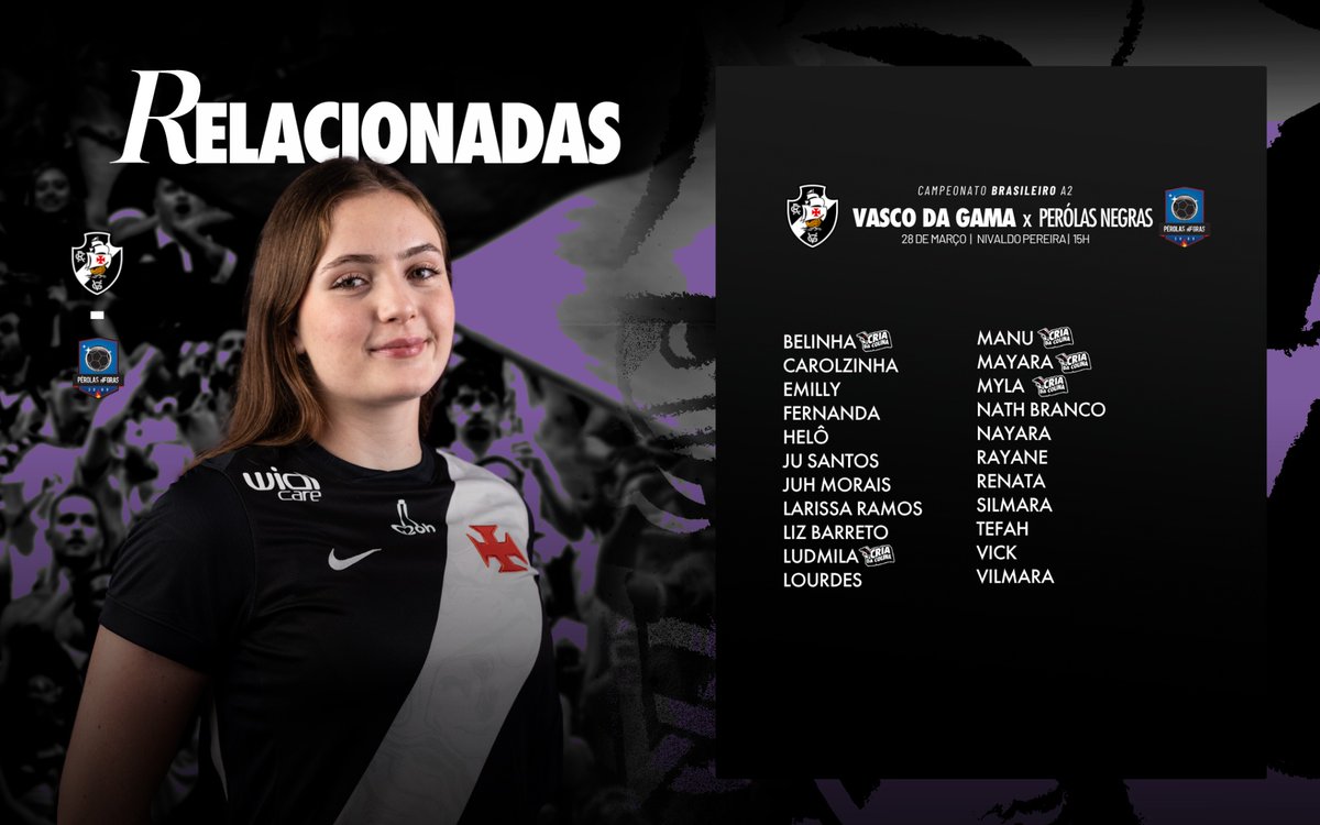 Feminino: Vasco divulga as relacionadas para o jogo contra o Pérolas Negras