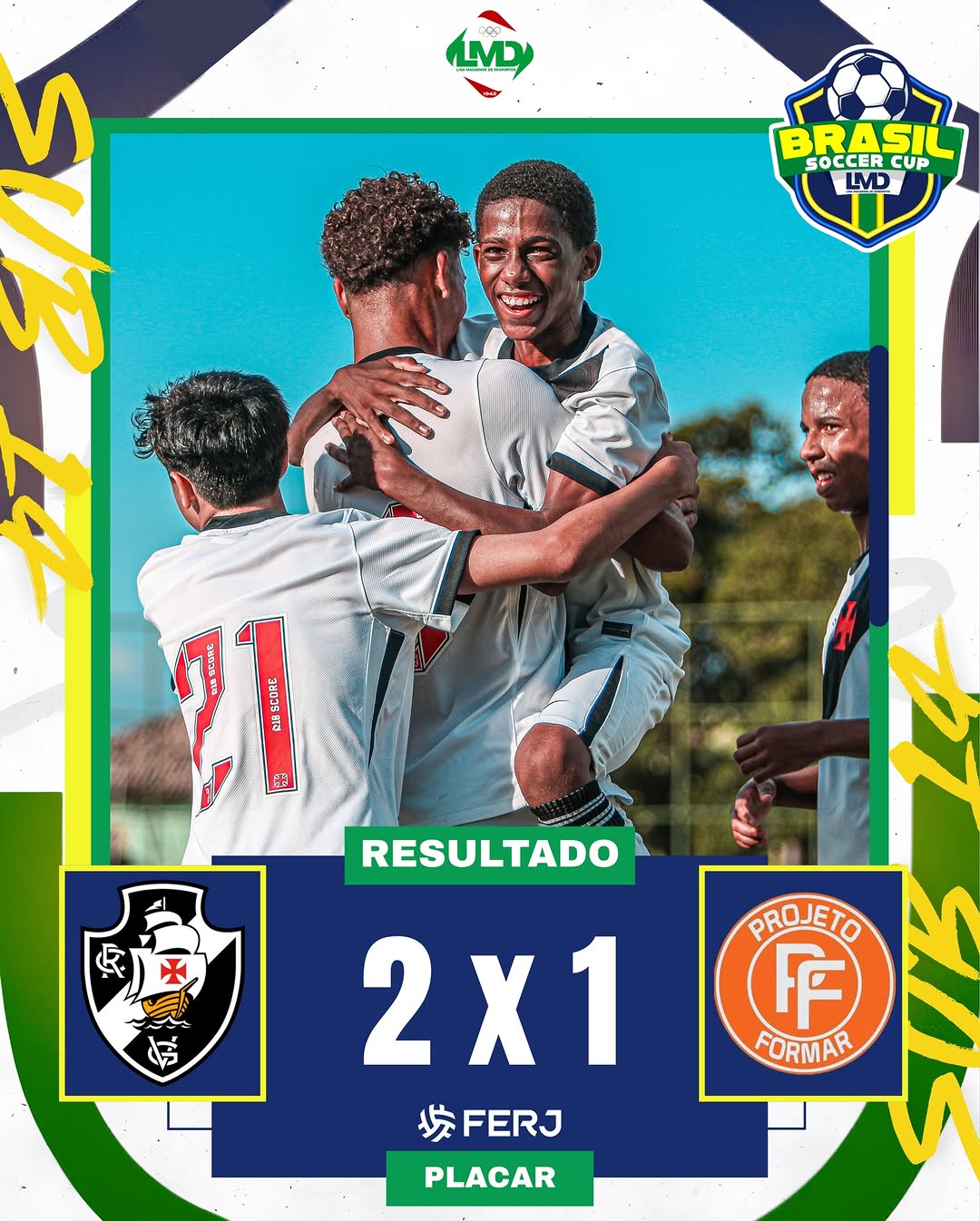 Pela 2ÂȘ rodada da Brasil Soccer Cup Sub-14, o Vasco da Gama venceu o Projeto Formar por 2 a 1! đą