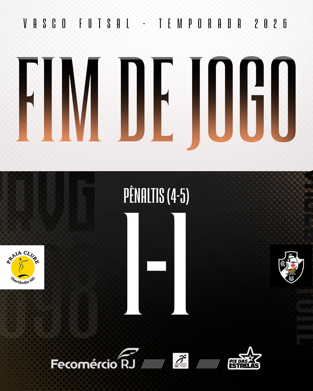 O Vasco da Gama garantiu sua classificação para a próxima fase da Copa do Brasil de Futsal na noite desta terça-feira (31). Após perder por 4 a 1 no tempo normal e empatar por 1 a 1 na prorrogação na Arena G3, em Uberlândia (MG), a equipe cruzmaltina superou o Praia Clube por 5 a 4 na disputa de pênaltis e eliminou o time mineiro.