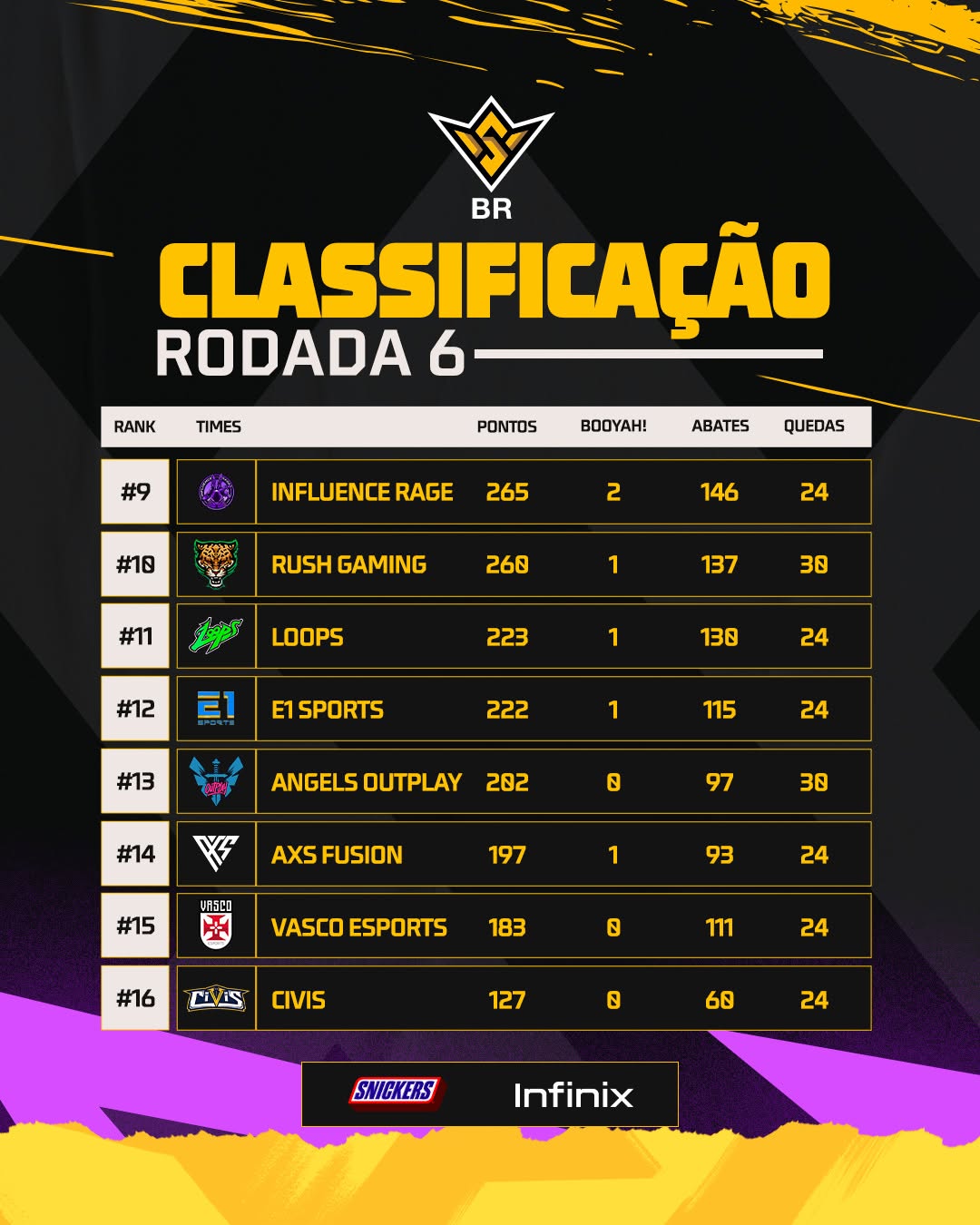 E-Sports: Vasco termina a 6ª rodada da FFWS BR de Free Fire na 15ª posição