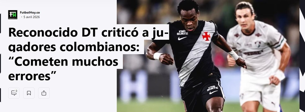 A declaração de Renato Gaúcho sobre a adaptação de jogadores colombianos no Vasco e no futebol brasileiro repercutiu bastante na imprensa da América do Sul. Jornais da Colômbia, Equador e Argentina deram destaque à opinião do treinador vascaíno.