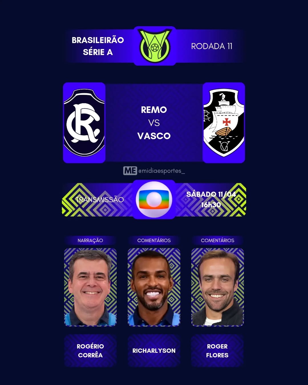 Confira os profissionais que trabalharão na transmissão de Remo x Vasco pela TV