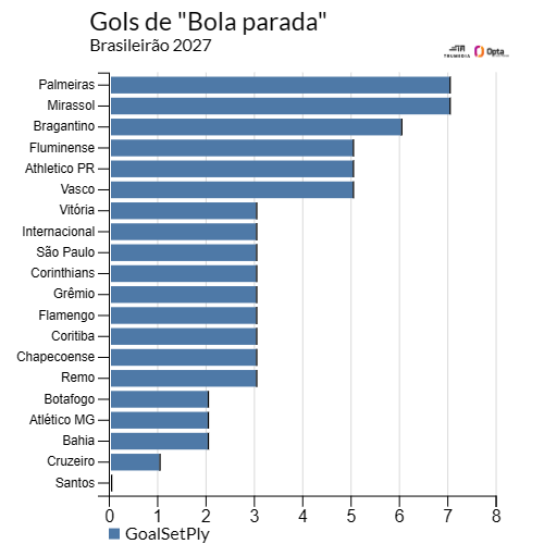 O gol marcado a partir de "bola parada" é a polêmica da temporada na Inglaterra. E aqui, neste início de brasileiro, quem tem usado mais essa arma?