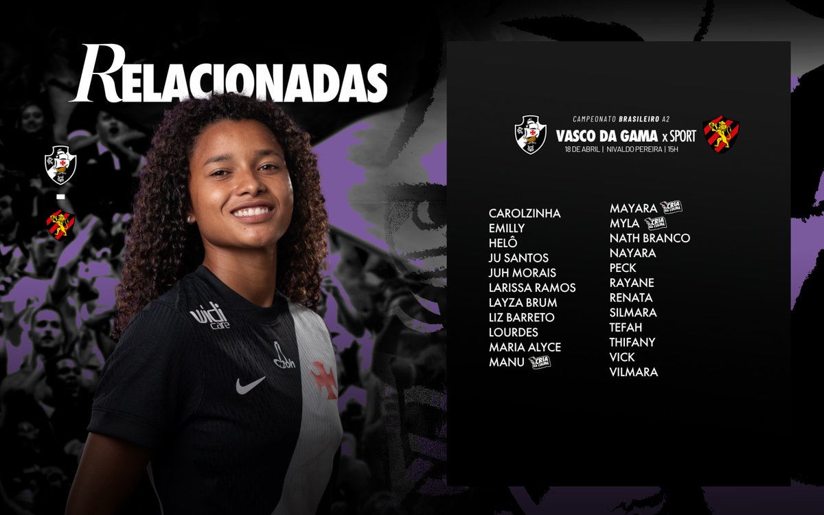 Feminino: Confira as jogadoras do Vasco relacionadas para a partida contra o Sport
