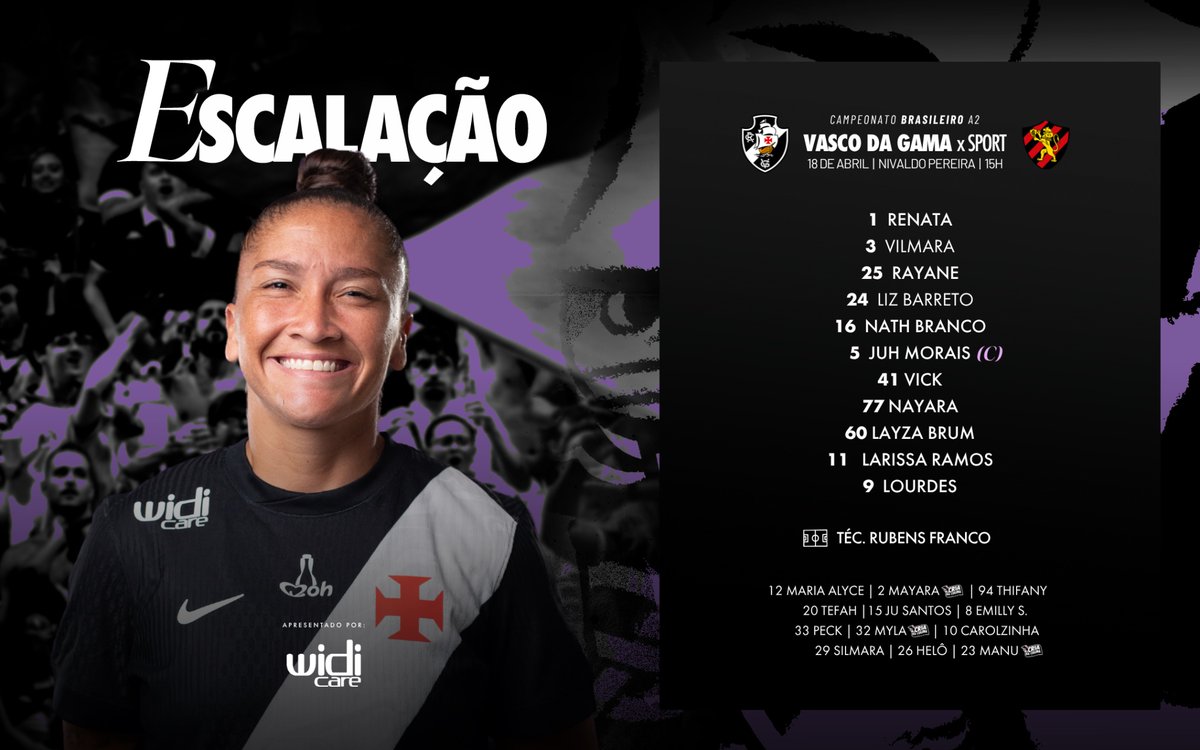 Feminino: Confira a escalação do Vasco para o jogo contra o Sport