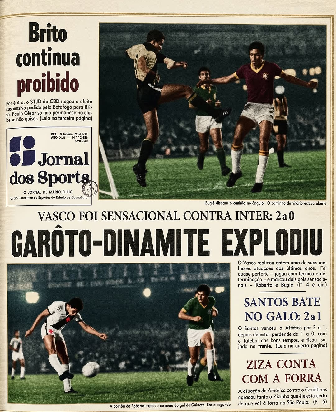 Você sabia que o apelido "Garoto-Dinamite" foi cunhado pelos nossos jornalistas Aparício Pires e Eliomário Valente? A consagração veio após o atacante, aos 17 anos, marcar seu primeiro gol como profissional pelo Vasco contra o Internacional, no Maracanã, com a potência de um chute que ecoou em nossas páginas!