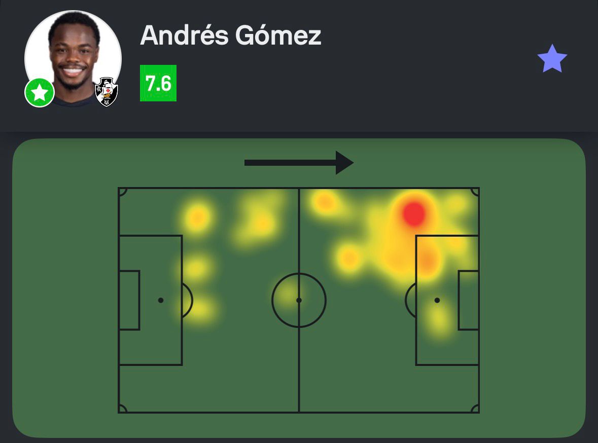 Andrés Gómez foi o Destaque Sofascore de Vasco 2-1 São Paulo!