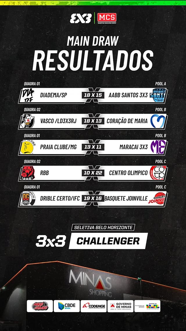 25/04/26 - Basquete 3x3: Veja a tabela do Vasco no maindraw da Seletiva do Challenger Brasília