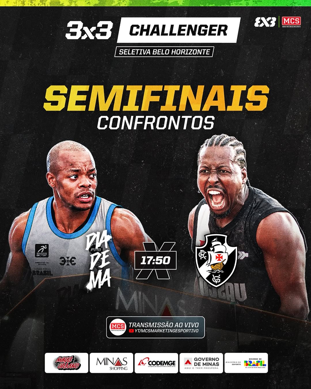 Jogando no Minas Shopping, em Belo Horizonte, o Vasco venceu o CT Diadema por 17 a 12 pelas quartas da seletiva do Challenger Brasília de Basquete 3x3. As semifinais serão na noite deste domingo.
